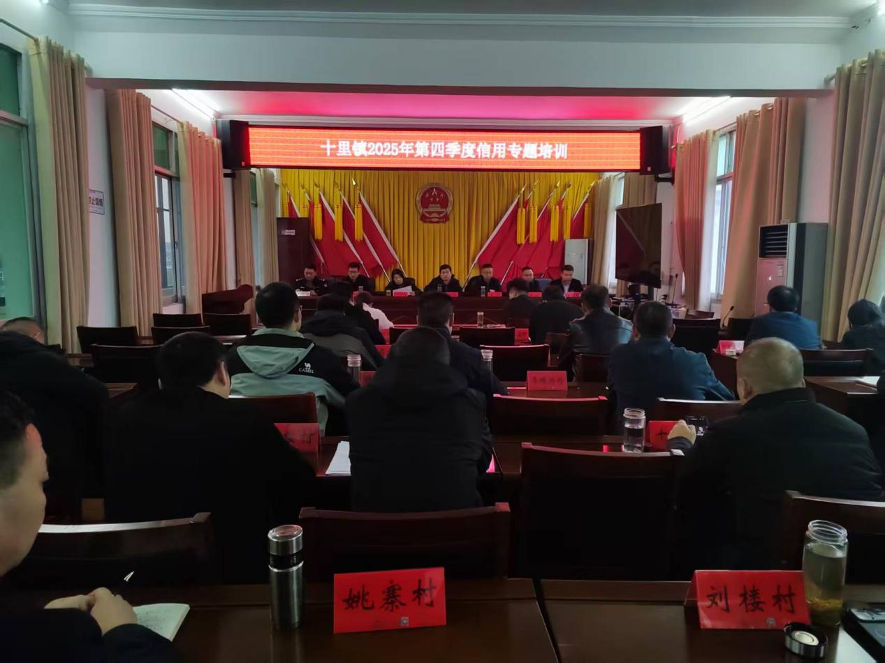 为进一步推进十里镇社会信用体系建设,提升全镇信用水平,营造良好的营商环境,10月20日,十里镇召开了2025年第四季度信用体系建设工作专题培训会。会议由党委副书记、镇长付从稳主持,镇领全体班子成员、各站所长、驻村干部、各村社区支书、第一书记参加了此次培训。