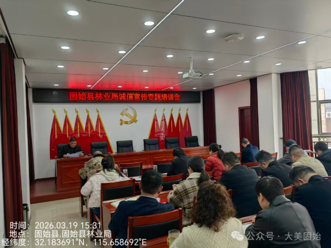 为深入推进社会信用体系建设,筑牢林业领域诚信根基,2026年3月19日,固始县林业局组织召开诚信宣传专题培训会,全局干部职工参加培训,会议由局相关负责人主持。