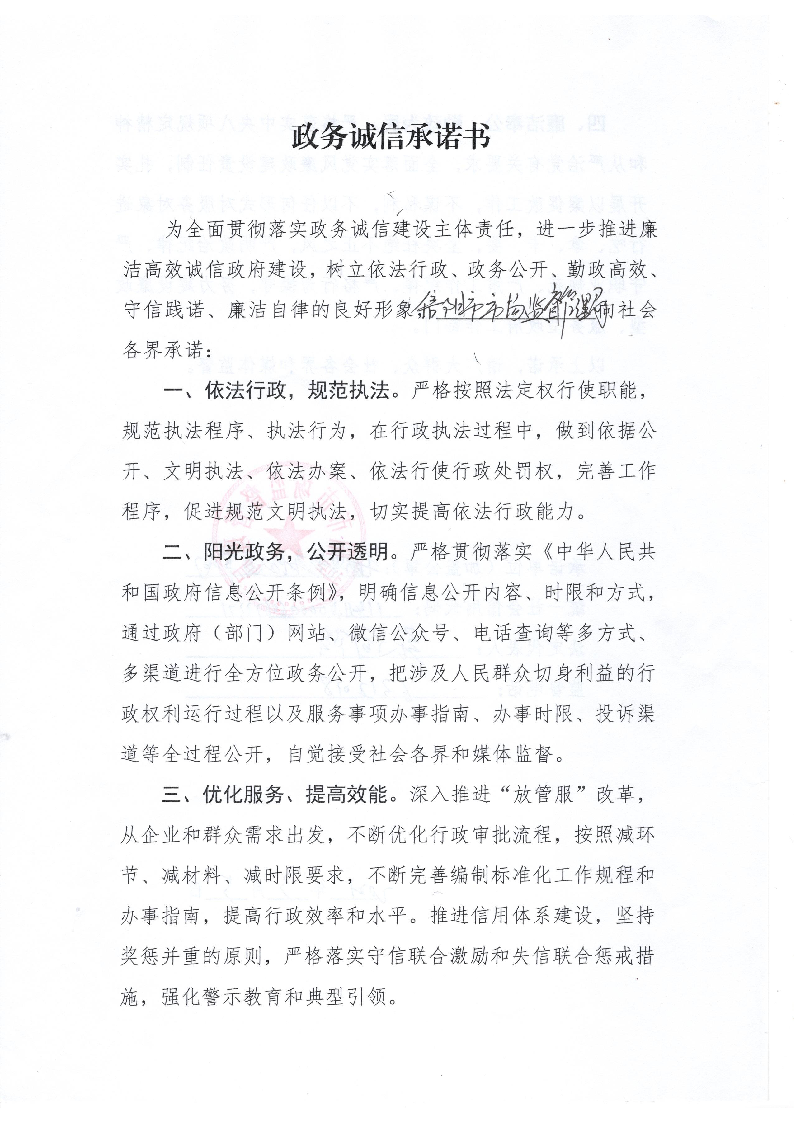信阳市文广旅局政务诚信承诺书