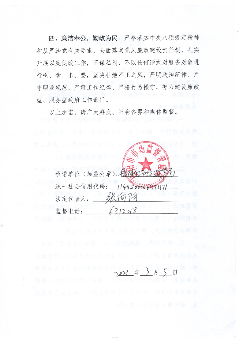 信阳市统计局政务诚信承诺书